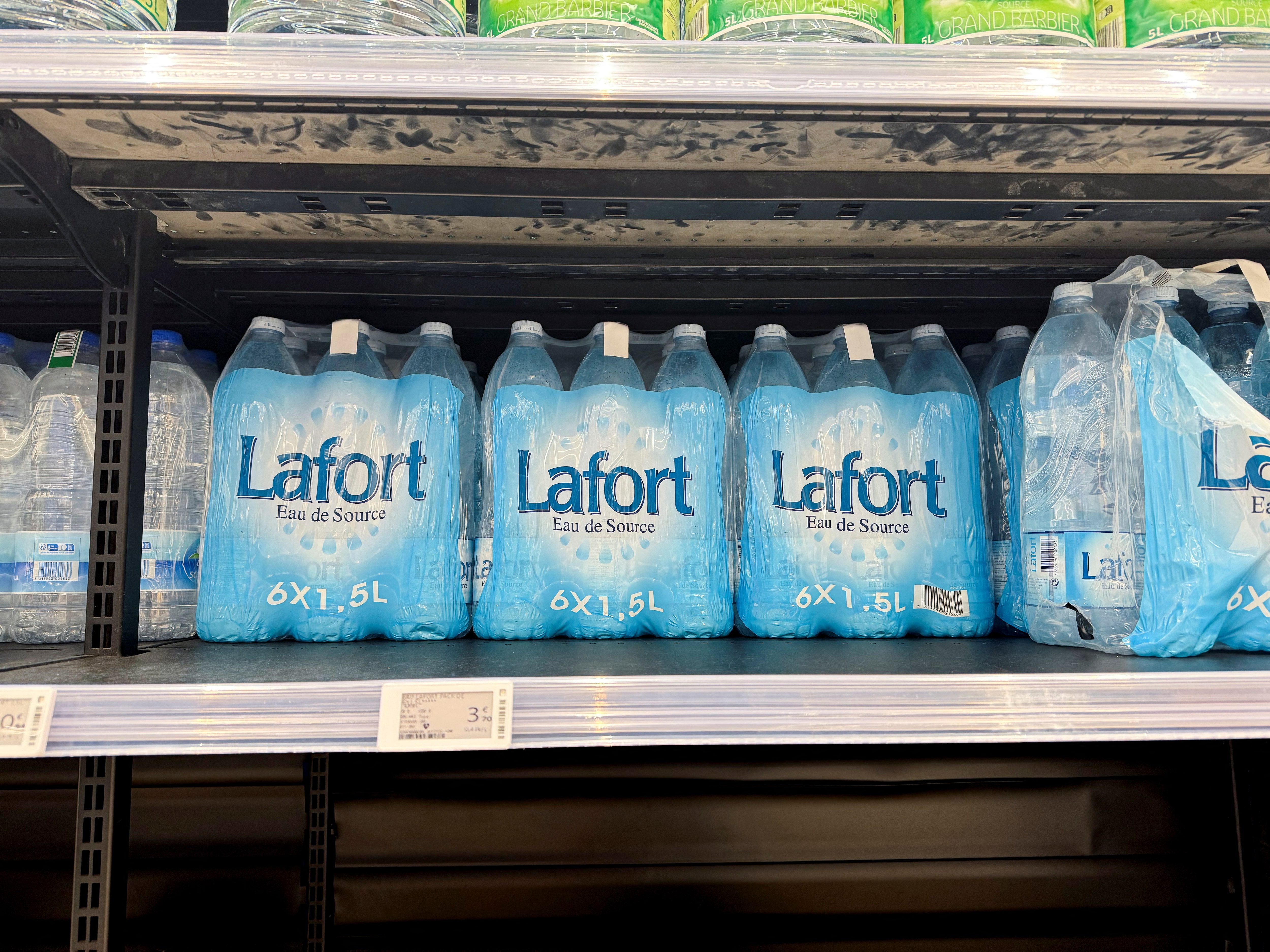 “我不喝自来水,”她在一家超市外说,她正在购买当地瓶装的拉福特水。拉福特是一种相对低价的品牌,其价格是巴黎部分地区同类产品的两倍。