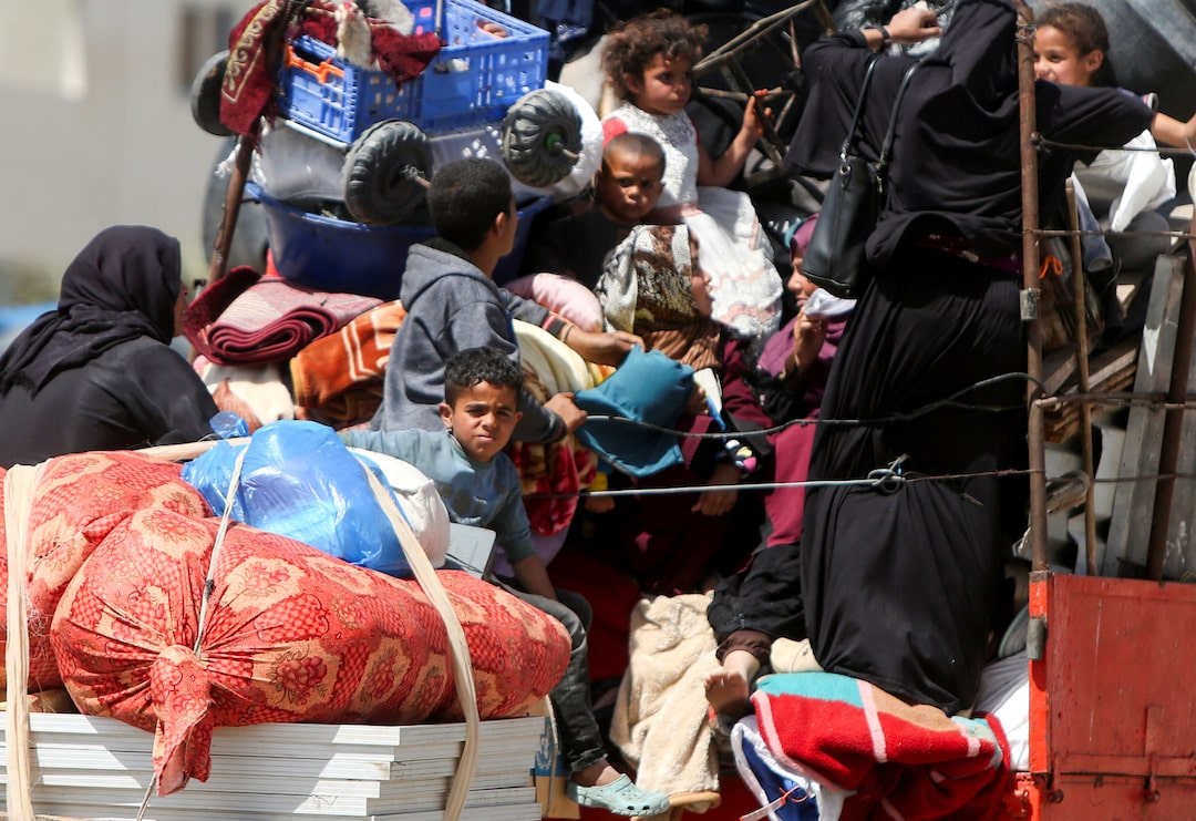 第1项,共6项,巴勒斯坦人在哈法南部城市附近逃离后,穿过哈农斯,遵循以色列的撤离命令,2025年3月31日。路透社/哈特姆·哈立德