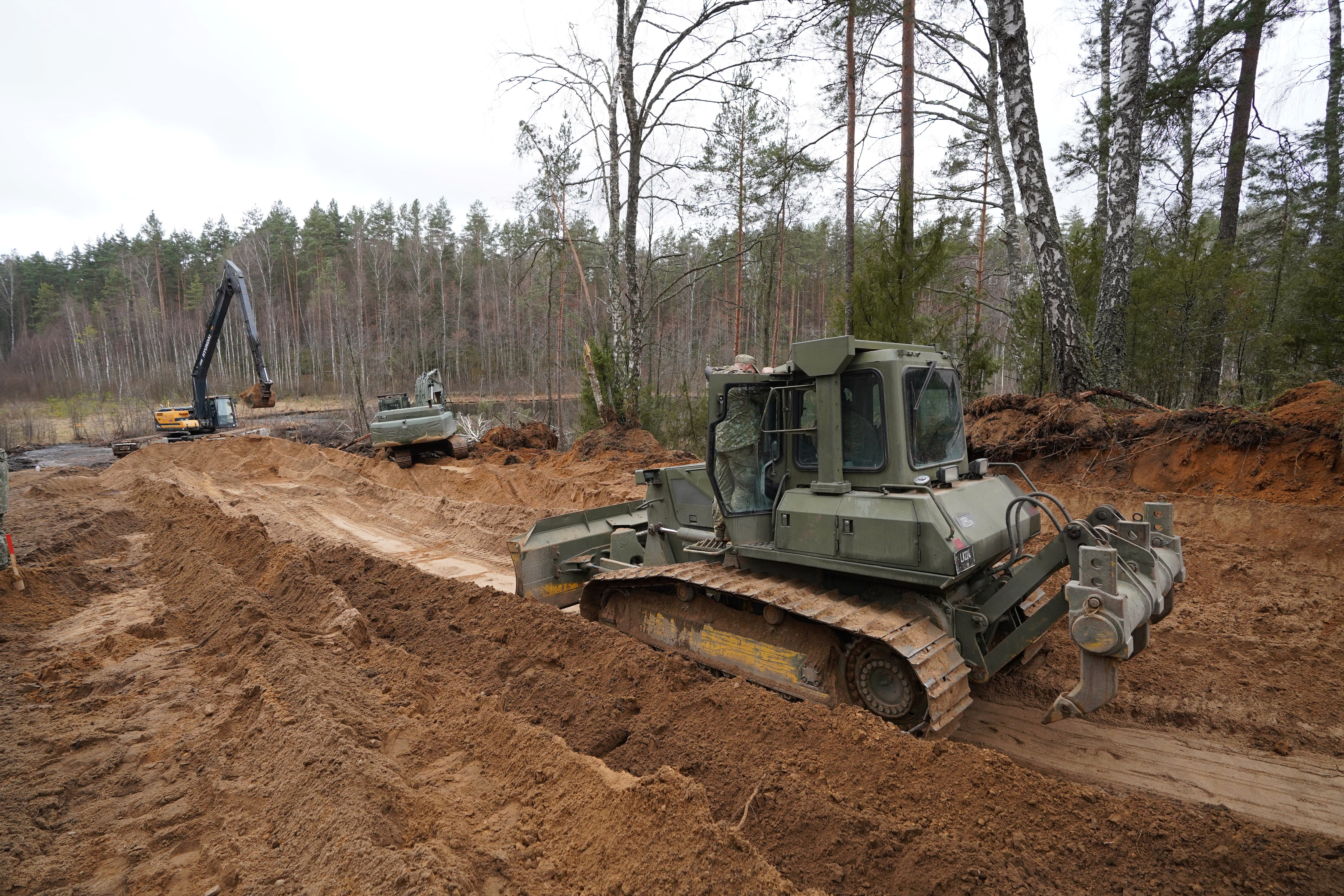 挖掘机和推土机在立陶宛帕布拉德训练场进行失踪美国士兵车辆的救援行动。维尔纽斯,3月31日(路透社) - 上周在立陶宛失踪的四名美国陆军士兵中,有三人在他们的车辆坠入沼泽并沉没后被发现死于现场,而对第四名士兵的搜寻仍在进行中,立陶宛总统周一表示。