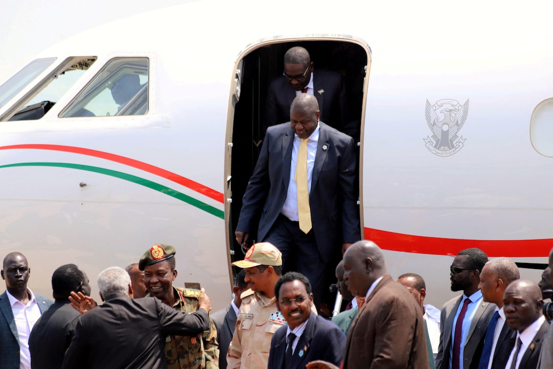 南苏丹前副总统和前叛军领袖里克·马查尔在2019年9月9日抵达朱巴国际机场,与总统萨尔瓦·基尔会面时走下飞机。路透社/萨米尔·博尔/档案照片