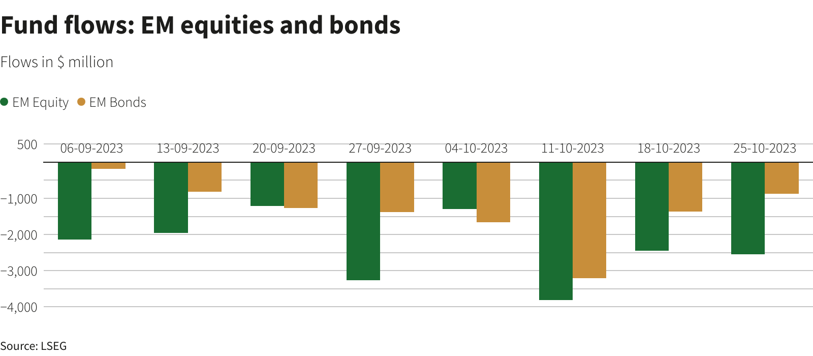 涵盖29,591只新兴市场基金的数据揭示,投资者在连续第四周的净卖出中,净撤回了6.6亿美元的股票基金。
