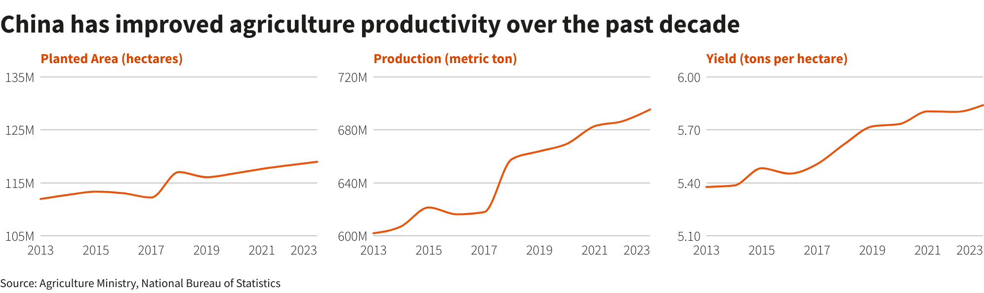 根据中国海关的数据,2024年中国从美国进口的玉米降至5.61亿美元,较前一年的26亿美元大幅下降,主要是由于国内生产的增加。