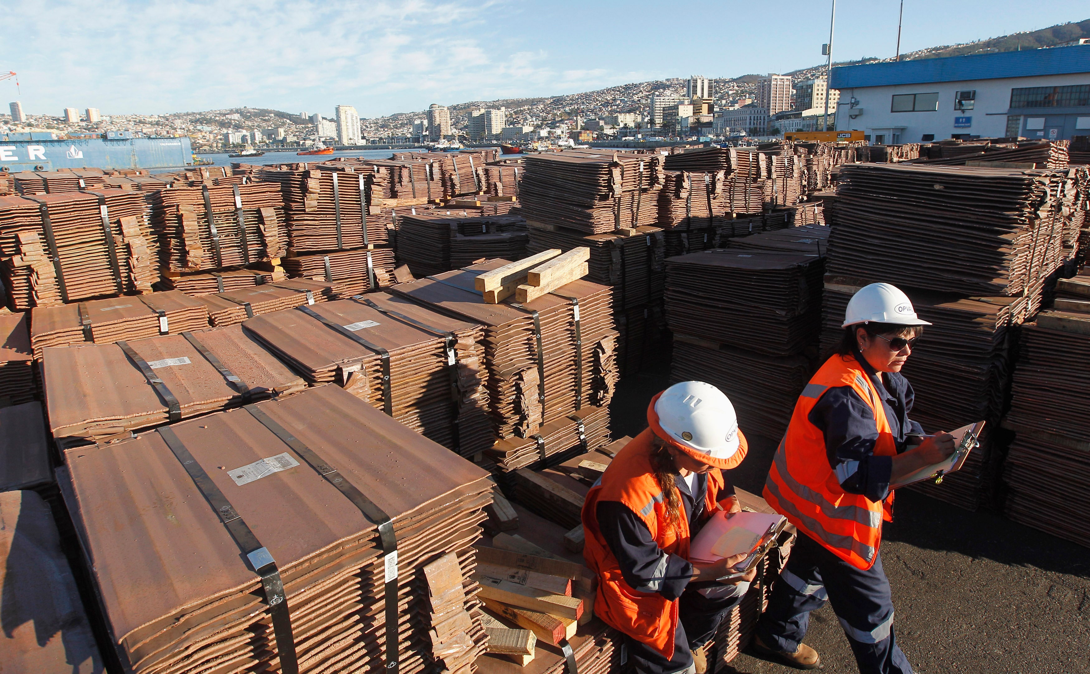 档案照片:港口工人检查一批将出口到亚洲的铜货物,地点在圣地亚哥西北部的瓦尔帕莱索港,2015年1月25日。路透社/罗德里戈·加里多/档案伦敦,4月11日(路透社)- 铜和其他基本金属在经历了一周非常波动的交易后,预计周五将收高,受到美元走弱的支持,尽管由于美国与中国之间的贸易冲突——全球主要金属消费国——对需求的风险限制了涨幅。