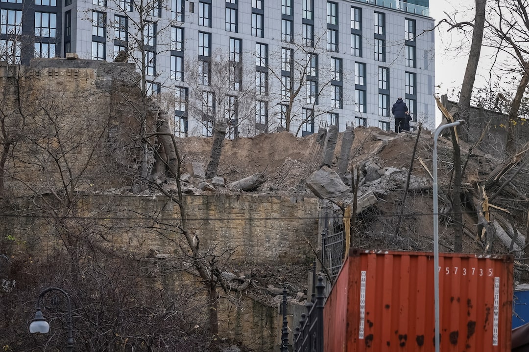 第1项,共10项 一名调查员透过窗户查看一栋在俄罗斯无人机和导弹袭击中受损的公寓楼,地点在乌克兰基辅,时间为2025年11月14日。路透社/托马斯·彼得 今日图片