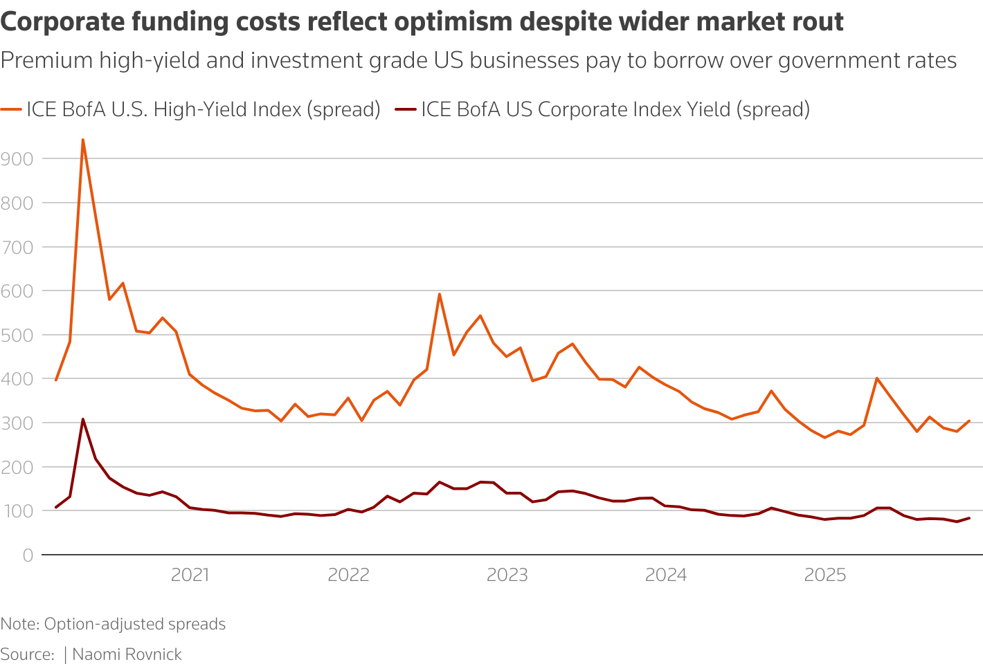 高收益和投资级美国企业借款的溢价超过政府利率,反映了对经济增长和债务需求的乐观情绪。