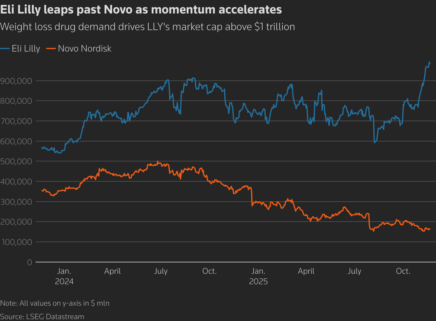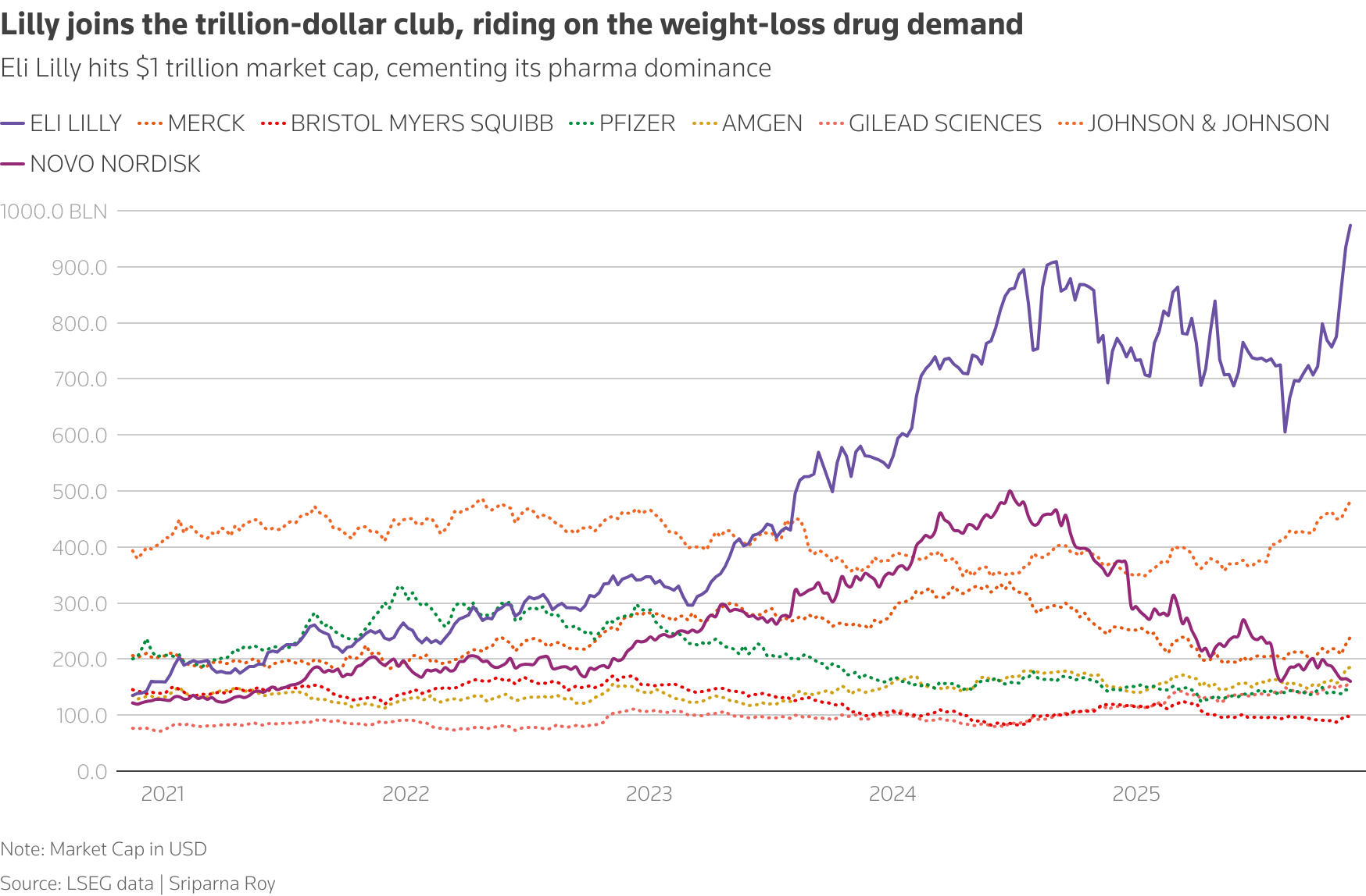 礼来市值达到1万亿美元,巩固其制药主导地位