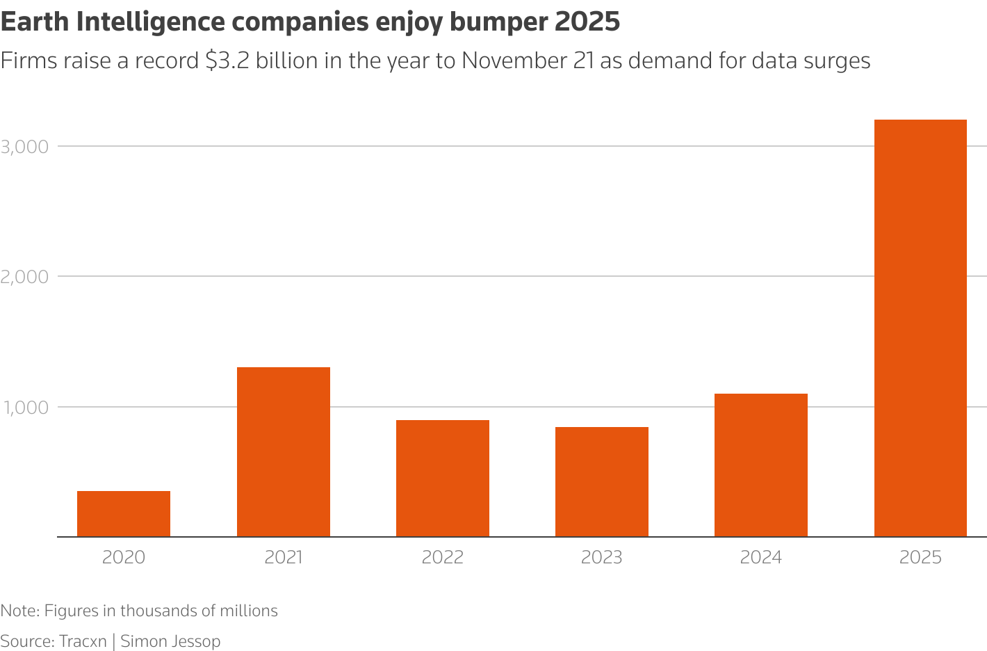 地球智能公司在2025年筹集创纪录的32亿美元