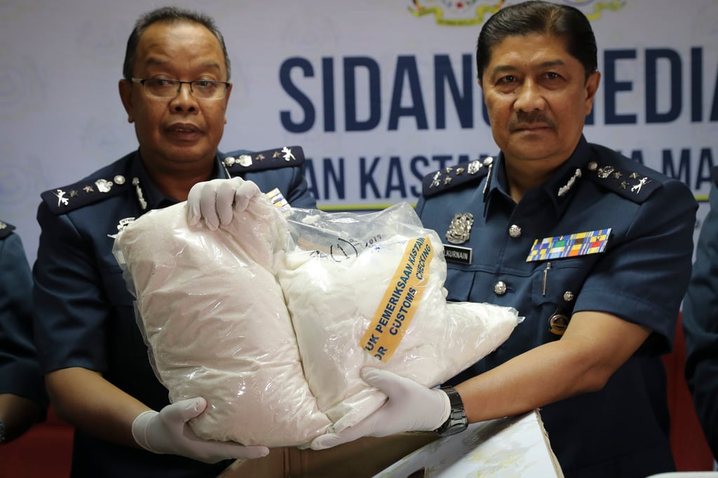 2019年马来西亚海关官员在雪邦展示查获的毒品。照片:美联社