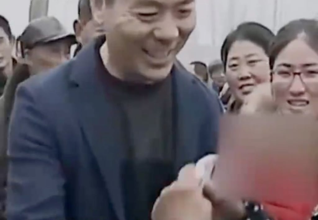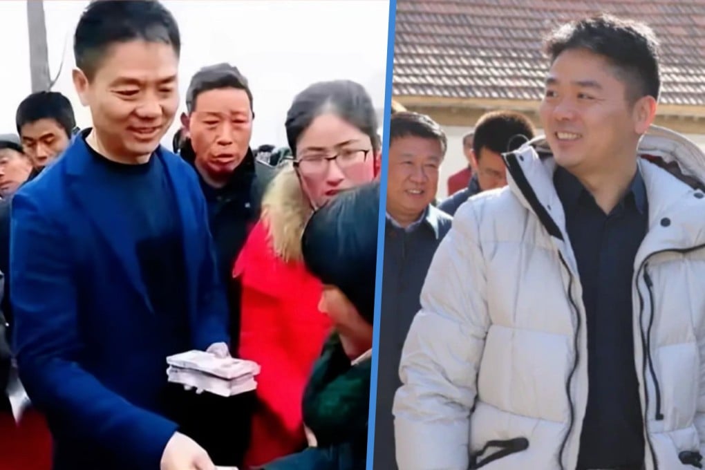 亿万富翁刘强东为家乡老人发放现金。图源:百度