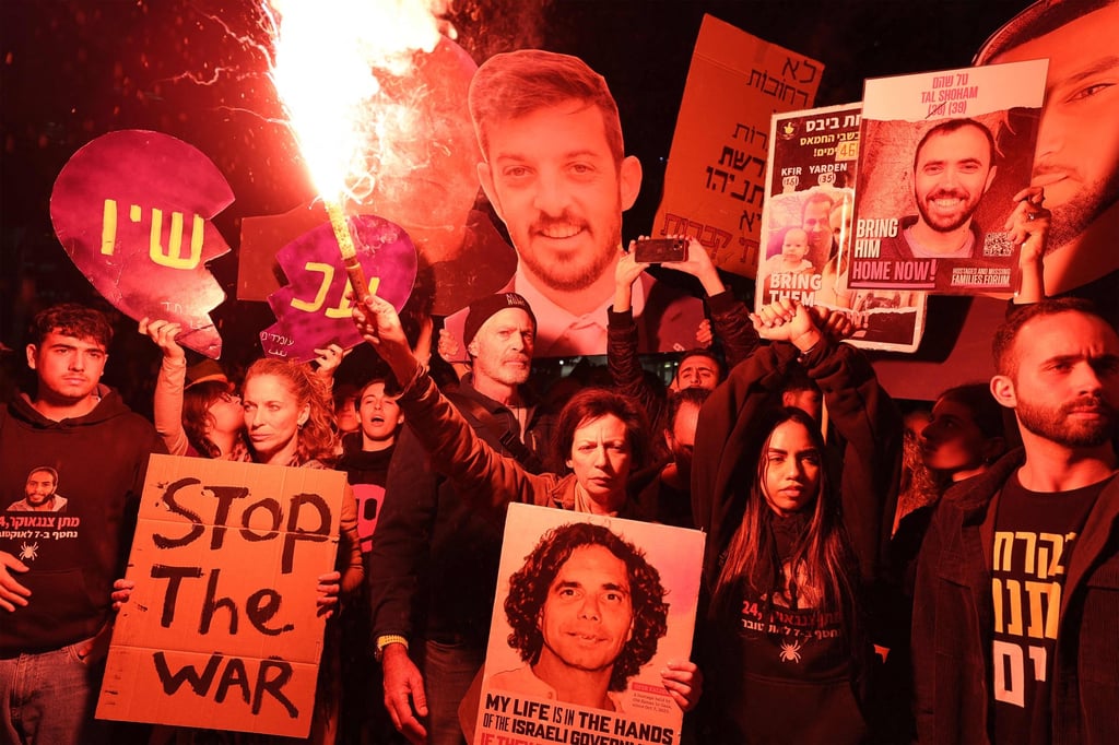 特拉维夫示威者呼吁采取行动解救被扣押在加沙的以色列人。照片:法新社