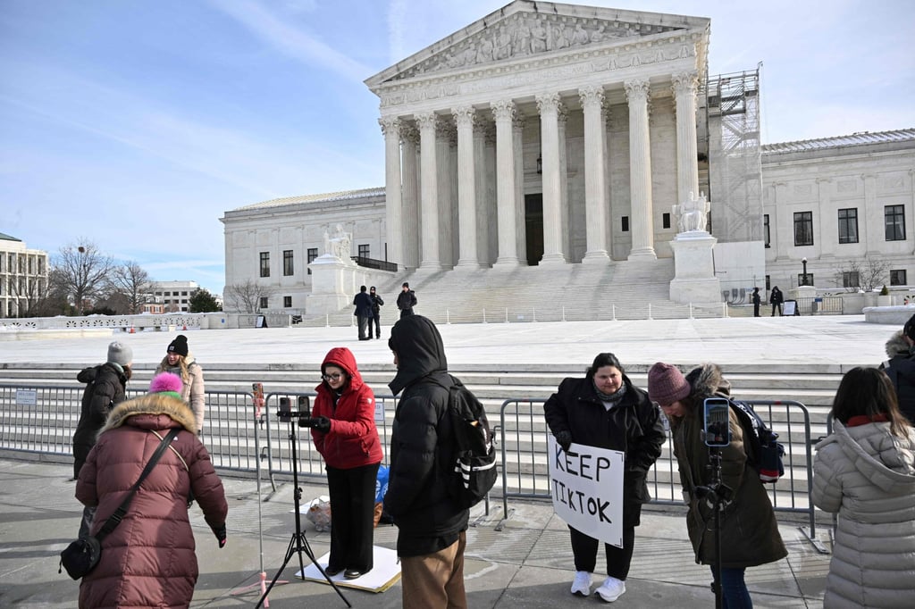 TikTok支持者在华盛顿美国最高法院前进行直播。照片:法新社