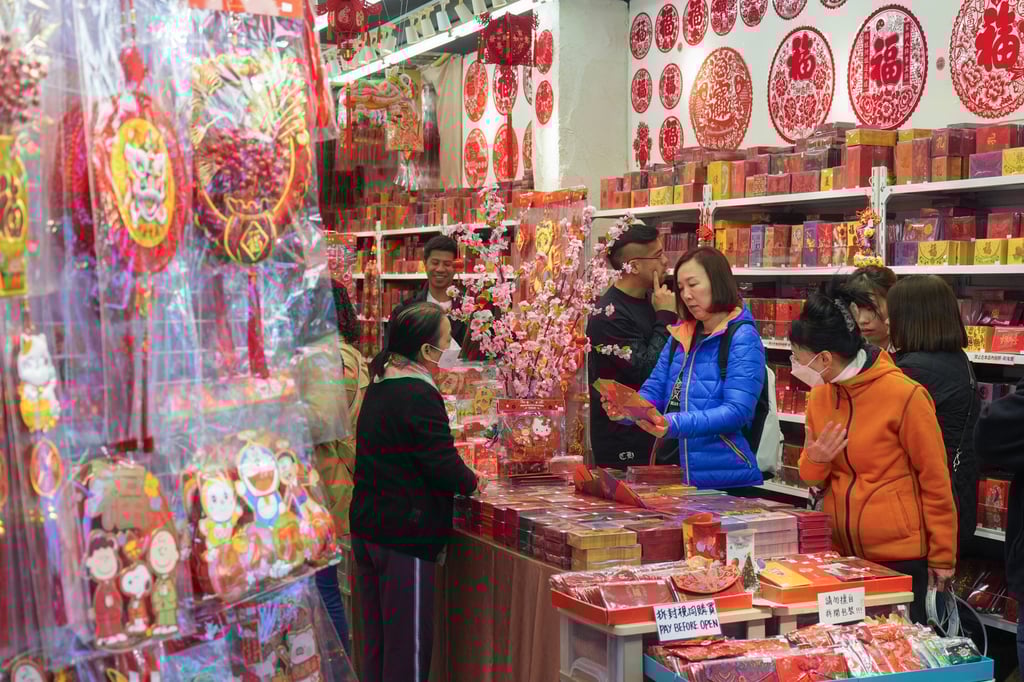 香港铜锣湾地区民众选购春节红包和装饰品。摄影:Eugene Lee
