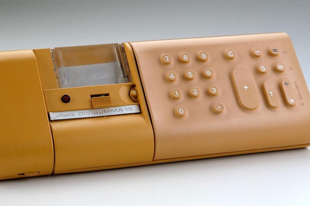 但马里奥·贝利尼1972年设计的Divisumma 18完全是另一个层级,按2024年币值计算约2000美元。为弥补没有屏幕的缺陷,它内置了微型热敏打印机(类似香港出租车打印收据的那种),能将键盘输入的内容打印在卷纸上。它甚至配有可充电电池。这些尖端技术由行业黑马Olivetti推出,其产品让当今科技巨头相形见绌。Olivetti由卡米洛·奥利维蒂1908年在意大利北部工业区都灵附近的小镇伊夫雷亚创立,最初生产打字机和加法机。50年代其子阿德里亚诺和孙子罗伯托接管公司,专注于电子领域,于1959年推出首批晶体管计算机。他们首款(也是全球首款)个人电脑Perottina(1965年发布,同样由贝利尼设计)被NASA用于阿波罗11号登月计划。