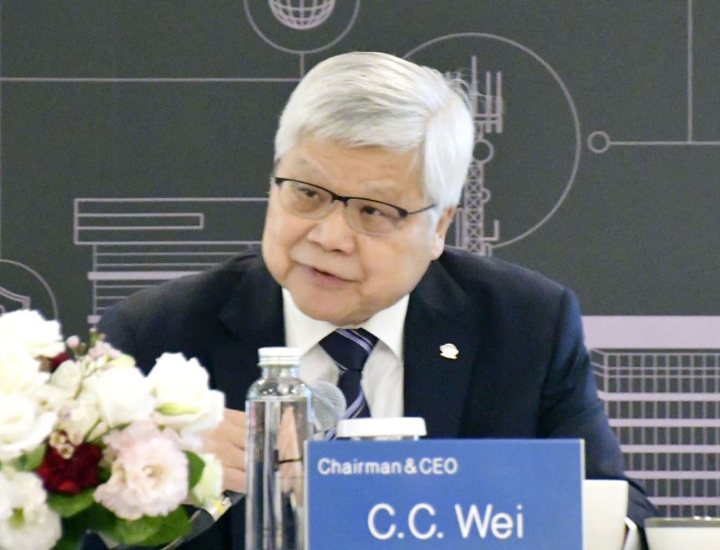 2025年1月16日,台积电董事长兼首席执行官魏哲家在台北举行的公司第四季度财报说明会上发言。照片:共同社