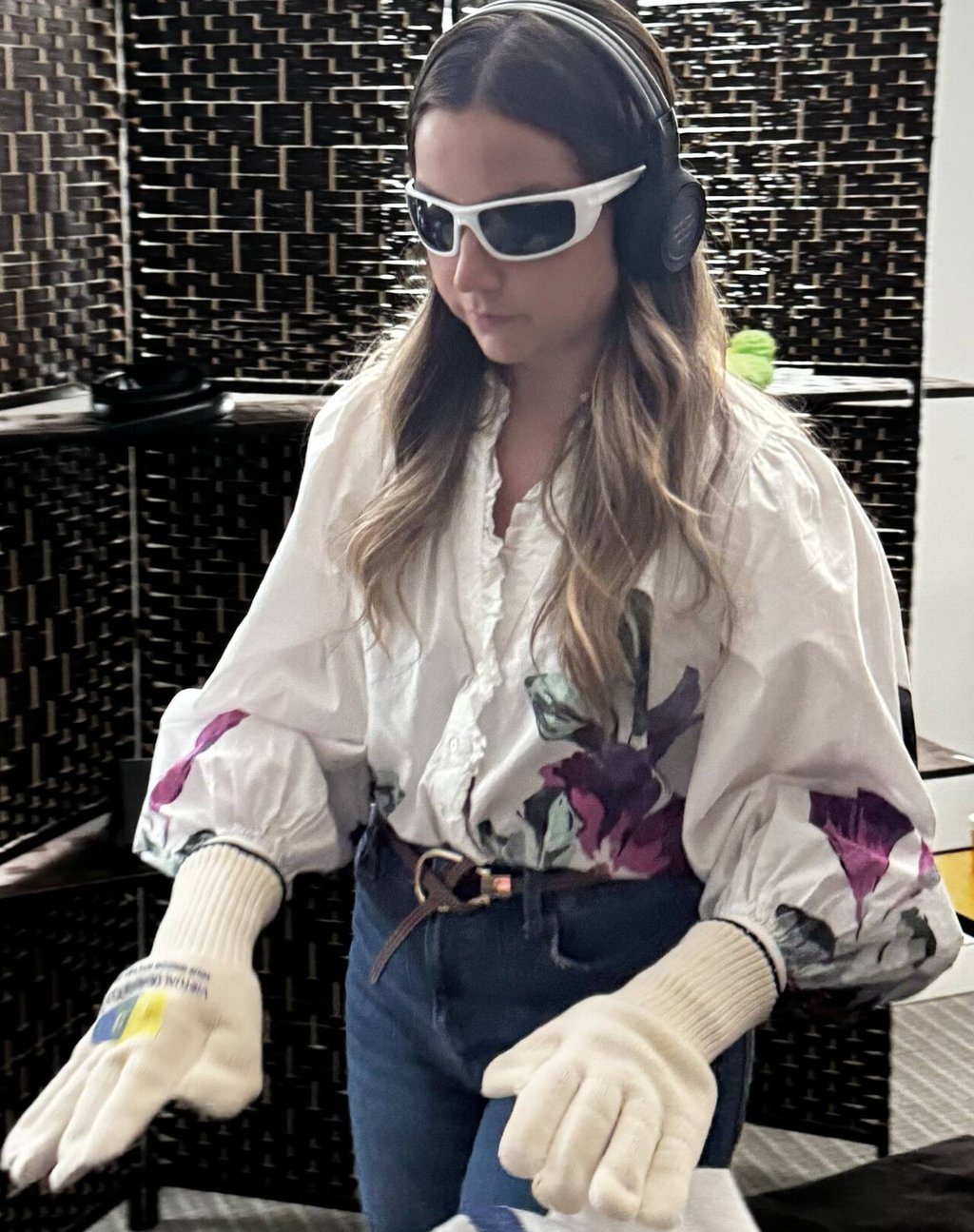 “接着她给了我特制墨镜、耳机,一只给惯用手佩戴的笨重大手套,另一只非惯用手套则稍轻便。”