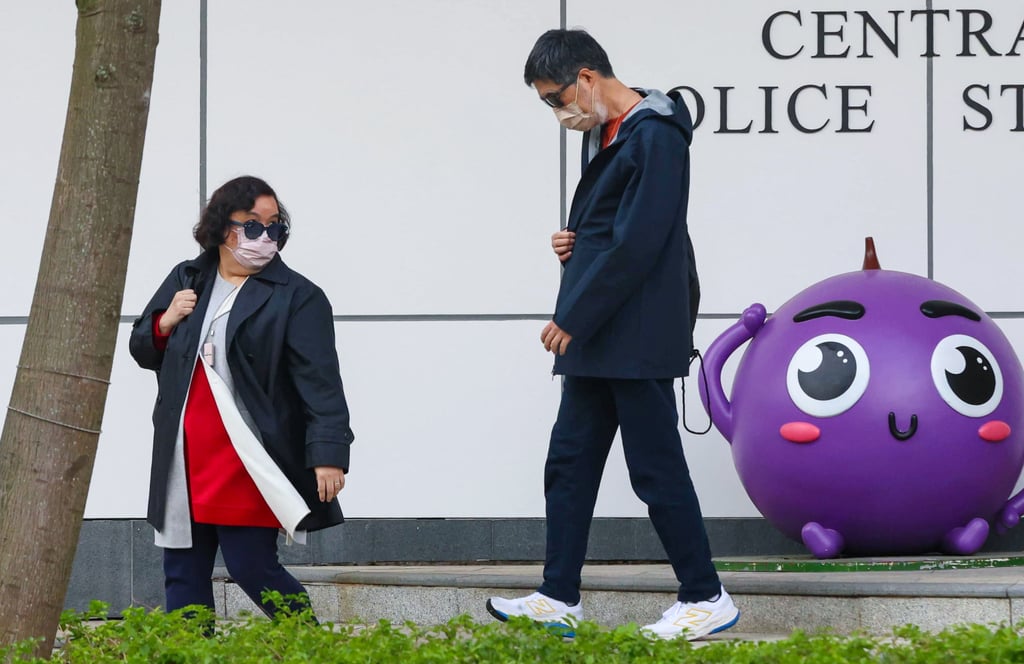 钟建华的妹妹(左)离开中区警署总部。照片:资料图片