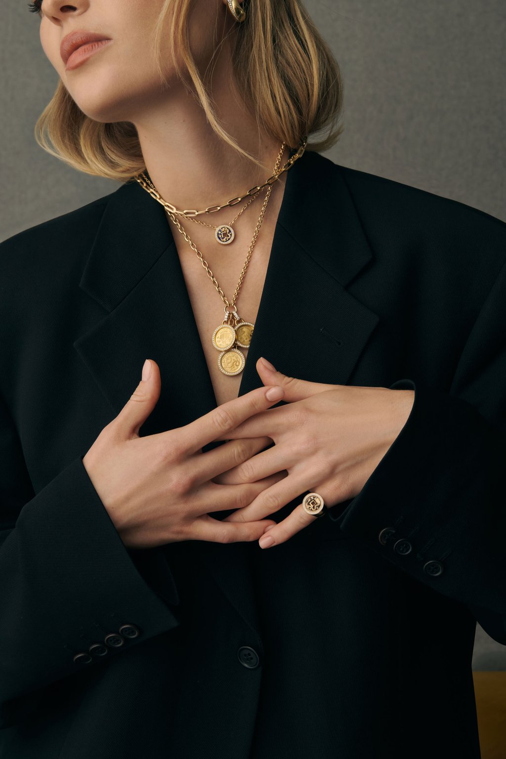 同样,Chantel Shafie珠宝已成为香港人寻找定制和按订单制作珠宝的首选。特别是设计师Chantel Shafie的Signature Medallion系列,该系列以镶嵌钻石框架的复古22k金币为特色,一直是最受欢迎的产品。一些金币由Shafie亲自采购,而另一些则是客户家族世代相传的传家宝。“我看到客户通过雕刻、诞生石或对他们有特殊意义的符号进一步定制他们的奖章,创造出独特的叙事,将每一件作品转化为珍贵的记忆,”她说。