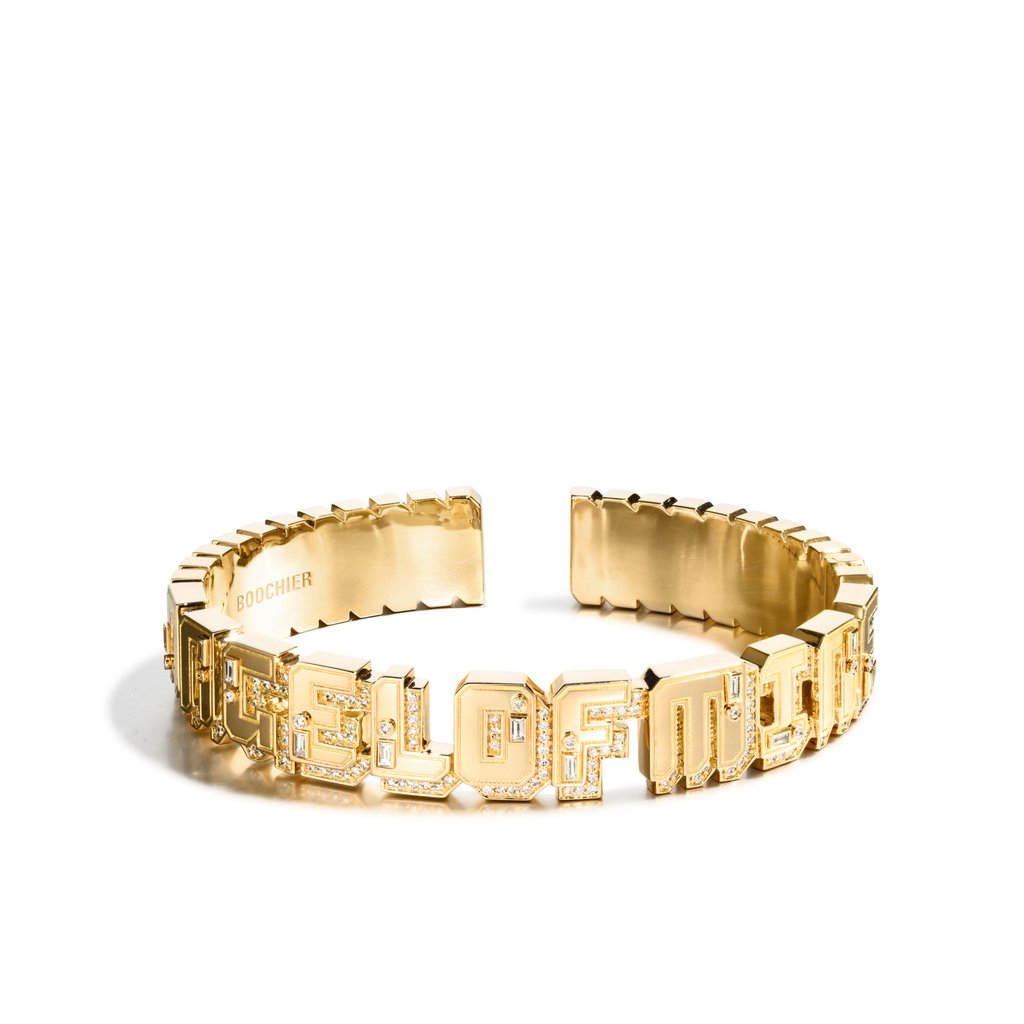 总部位于香港的高级珠宝品牌Boochier提供镶嵌宝石的字母吊饰,顾客可自由选择文字定制其18K金镶钻怀旧手镯。创始人Melinda Zeman表示:“最常见的定制需求通常与孩子相关——从新生儿降临到孩子人生的重要里程碑。我想是因为孩子们的天真与乐观总能给予我们无限灵感。我最得意的作品之一是一条刻着’我的天使’的怀旧手镯。千禧年初听着布兰迪[与莫妮卡合唱]的歌曲长大,这首歌总让我想起我的小天使女儿。”