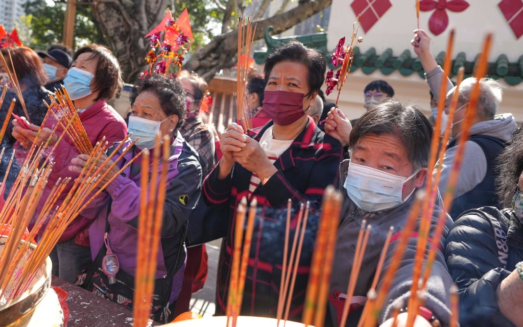香港黄大仙祠内,信众正为来年祈福。摄影:Elson Li