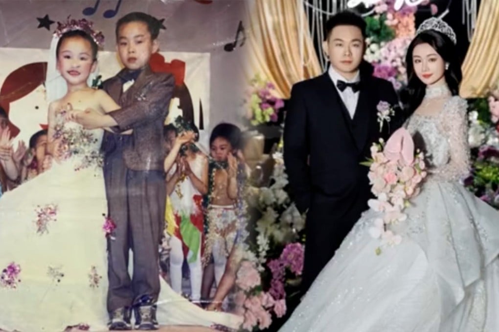 本月中国一对新婚夫妻因二十年前在幼儿园文艺汇演中扮演夫妻而登上热搜。郑先生与未透露姓名的妻子在广东潮州举办了婚礼。