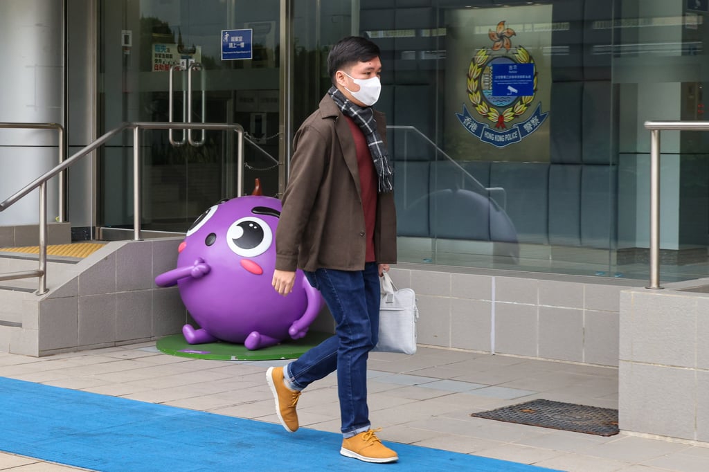 香港民意研究所研究主任袁志光离开沙田警署。摄影:谢丽仪