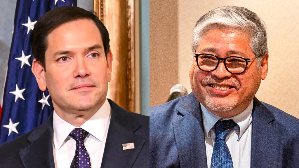 美国新任国务卿马可·卢比奥(左)与菲律宾外长恩里克·马纳洛。图片来源:法新社、美联社