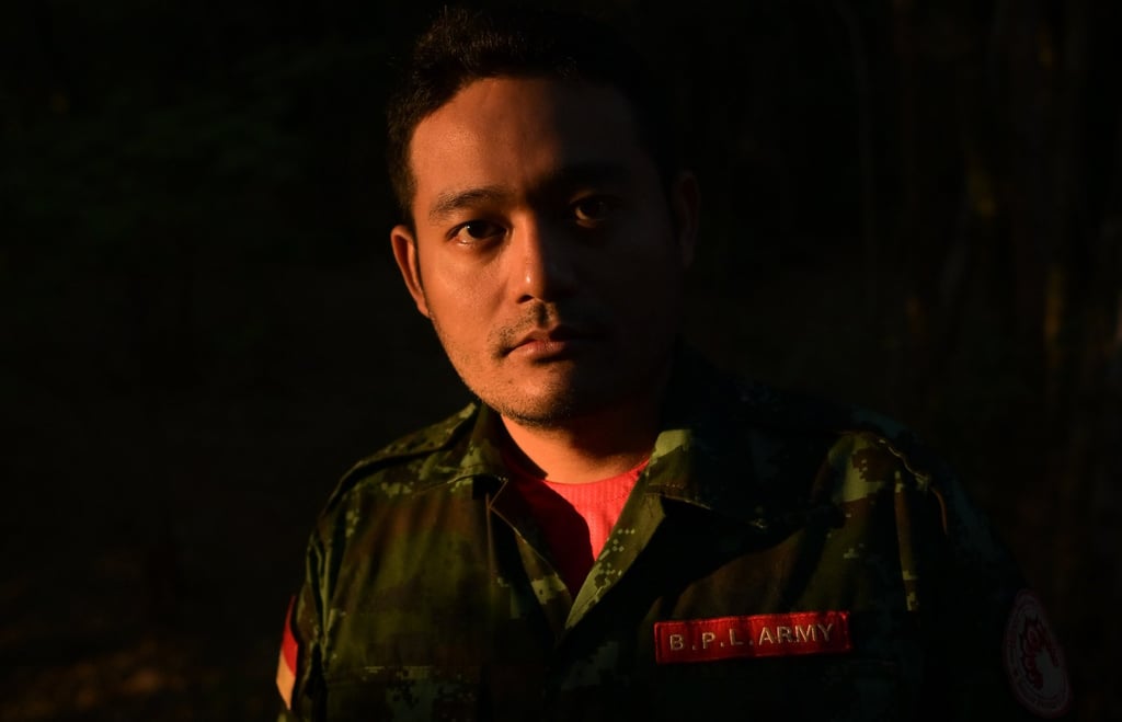 1月13日,缅甸克伦邦,缅族人民解放军(BPLA)指挥官貌桑卡在其大本营留影。摄影:库萨姆