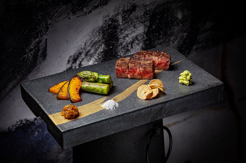 澳门银河莱佛士酒店铁板烧·匠呈现日式烤肉与时蔬。图片来源:品牌提供