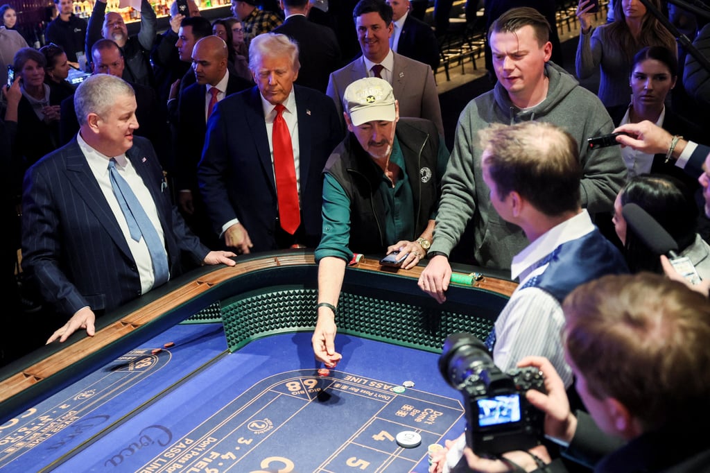 周六,美国总统特朗普站在内华达州拉斯维加斯Circa度假村和赌场的骰子桌旁。照片:路透社