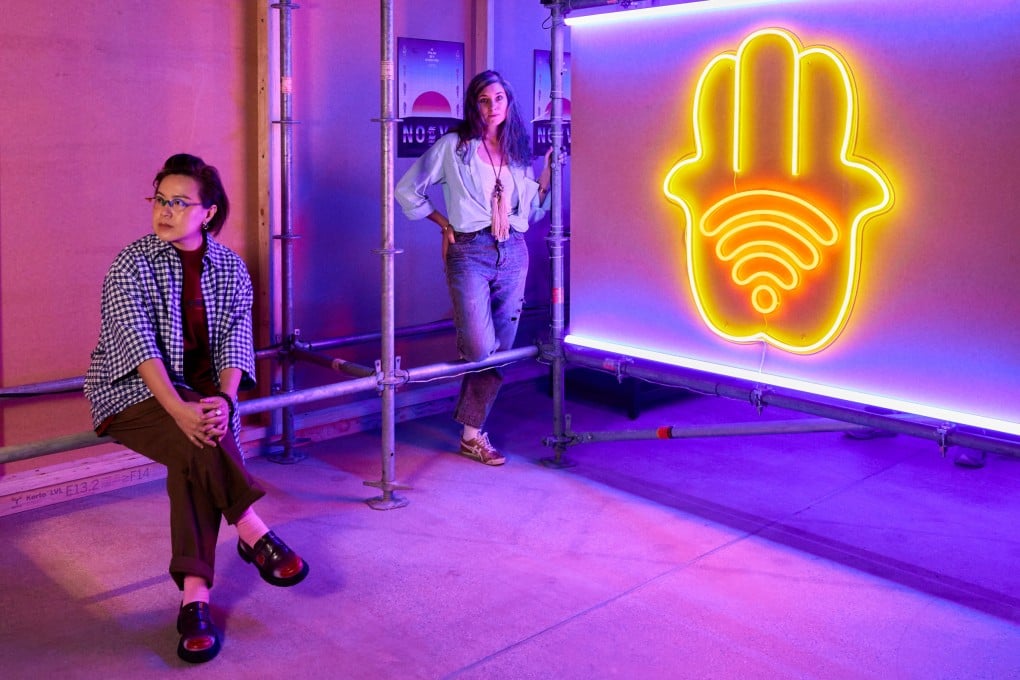 曹斐(右)与展览设计方Beau Architects的建筑师夏洛特·拉丰-雨果。摄影:戴安娜·帕努西奥/新南威尔士州美术馆