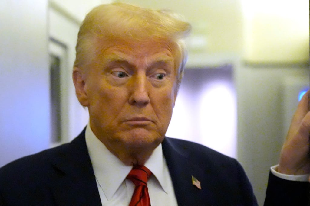 周一,唐纳德·特朗普总统在从迈阿密飞往马里兰州安德鲁斯联合基地的空军一号上对记者讲话。照片:美联社