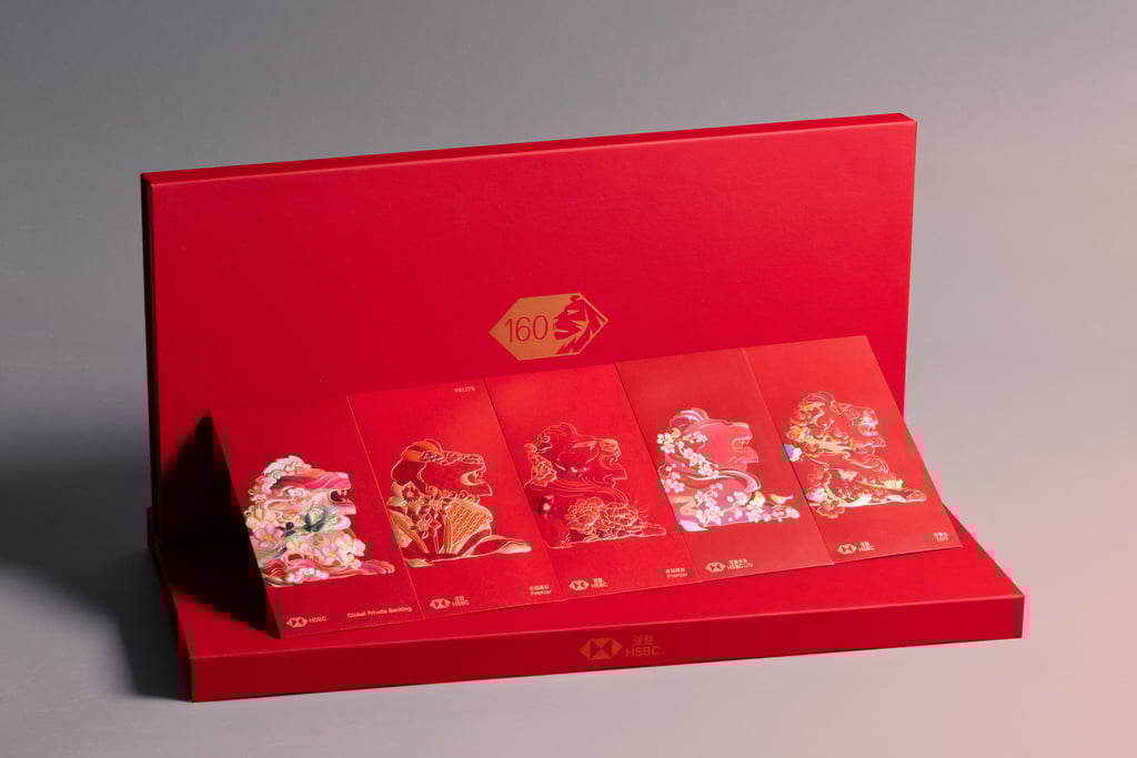 汇丰银行推出了一套特别限量版利是封,上面印有该银行标志性的狮子图案以及其香港总部在不同时代的描绘。