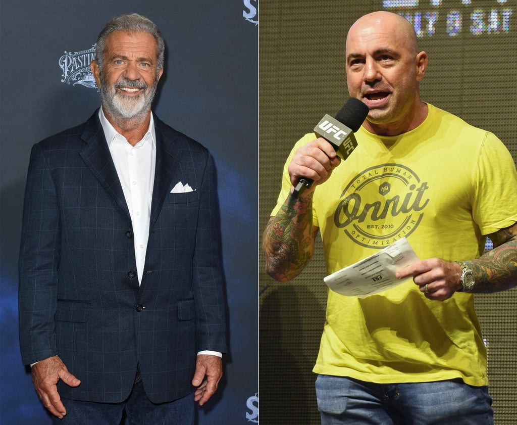演员兼制片人梅尔·吉布森(左)在乔·罗根(右)的热门播客《乔·罗根体验》中声称抗寄生虫药物可治愈癌症,加拿大癌症协会称该说法"极其危险"。图片来源:法新社/盖蒂图片社
