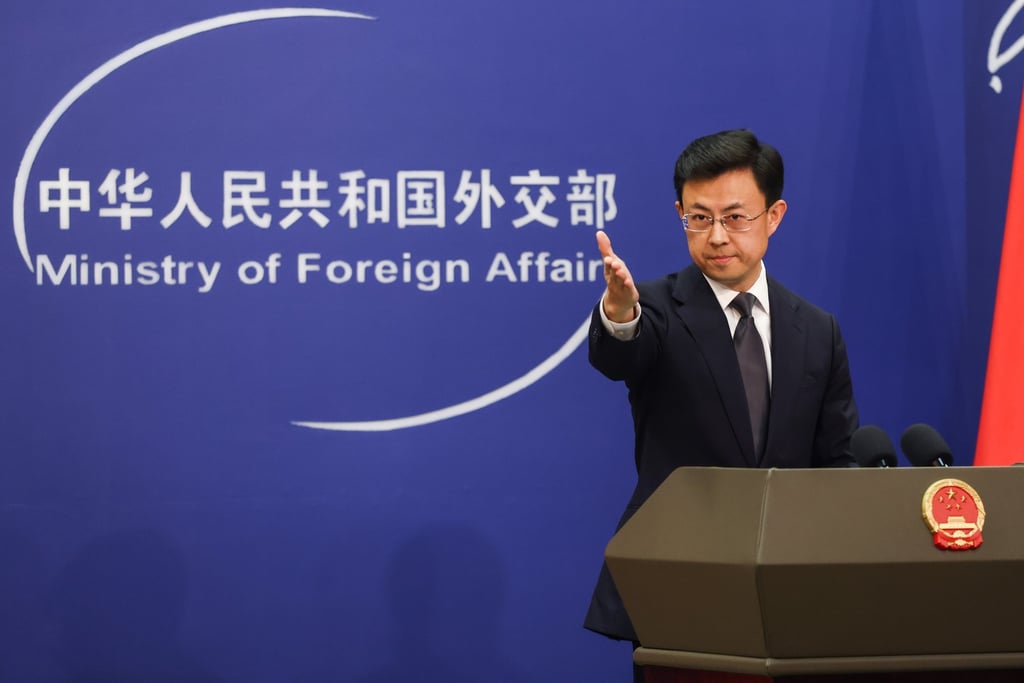 中国外交部发言人郭佳坤上月在北京记者会上发言。图片来源:EPA-EFE