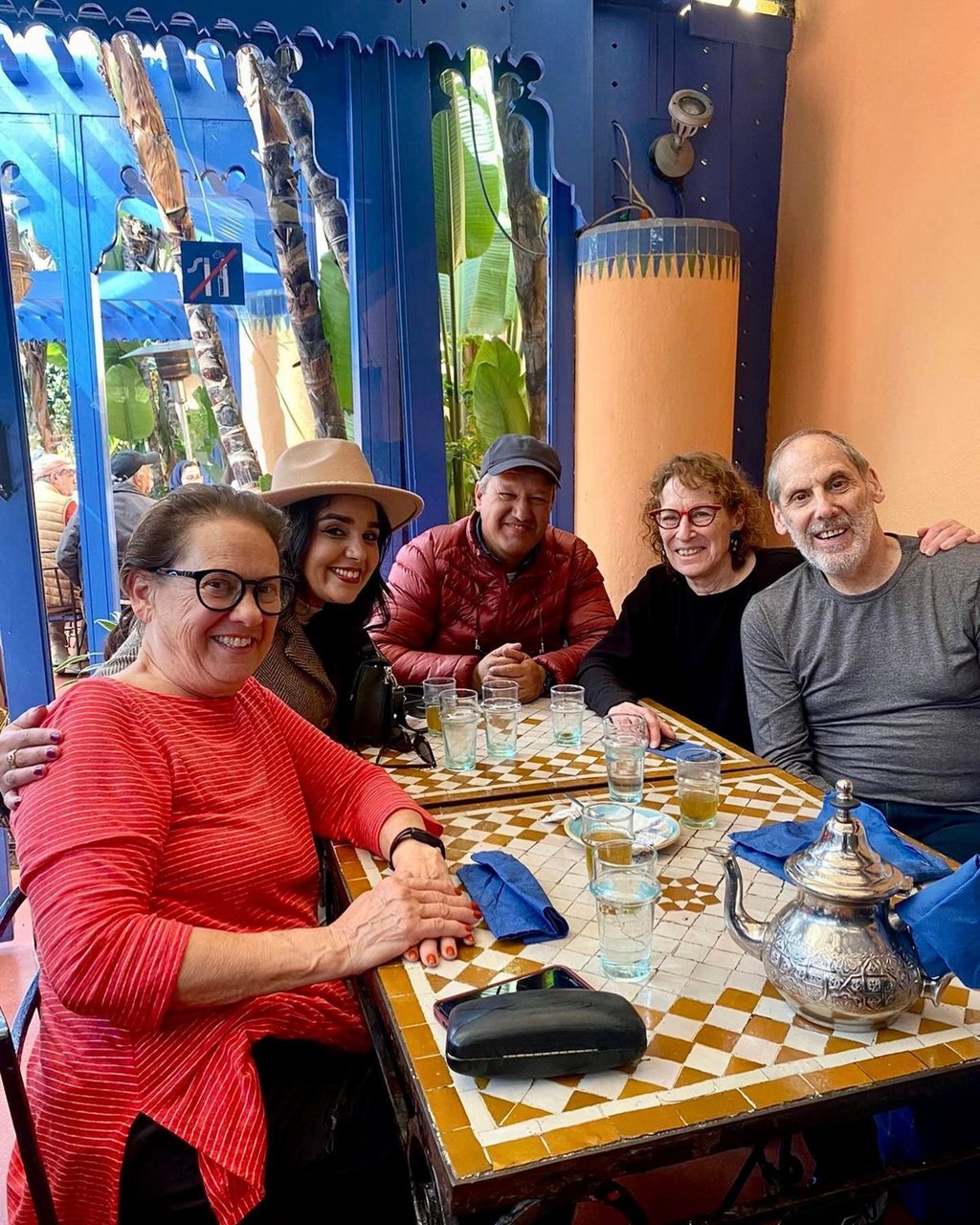梅吉迪旅行团的成员们在摩洛哥卡萨布兰卡会见当地记者萨拉·埃塔拉布(左二),聆听该国不同社群的真实生活境遇。图片来源:Instagram/mejdi_tours