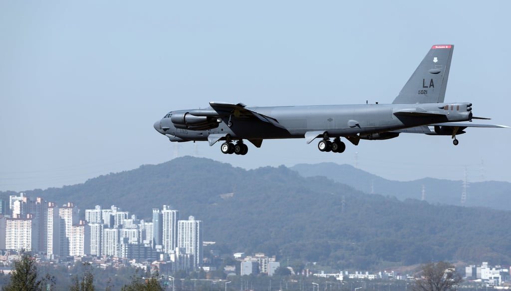 2023年10月,美国B-52H战略轰炸机降落韩国清州机场。该机场为军事设施保护区内的军用机场。图片来源:EPA-EFE/韩联社