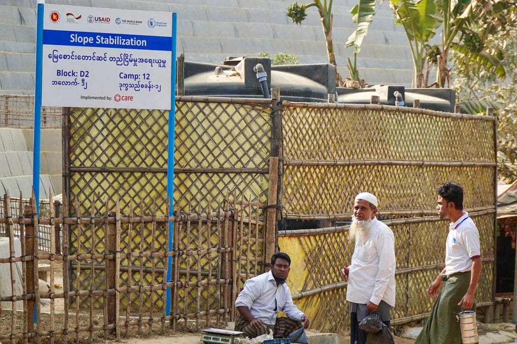 2月5日,孟加拉国考克斯巴扎尔难民营,罗兴亚人在美国国际开发署资助的边坡稳定工程附近活动。摄:路透社