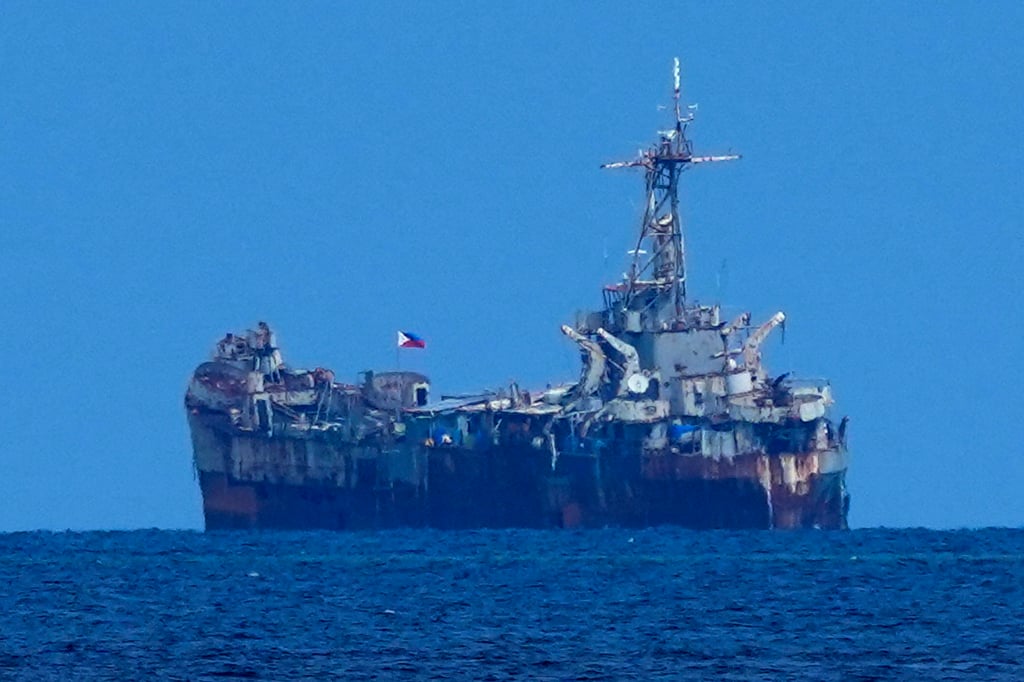 中国谴责菲律宾海军破旧但仍活跃的“马德雷山号”舰船在南海第二托马斯浅滩的存在是不可接受的。照片:美联社