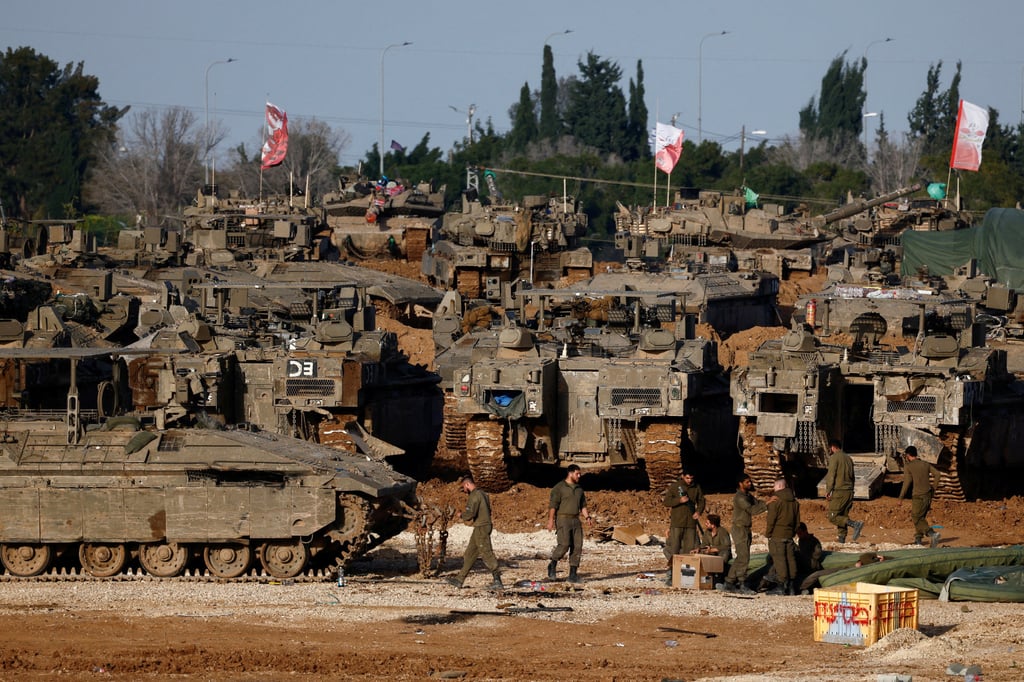 以色列军队在靠近加沙边境的以色列境内。照片:路透社