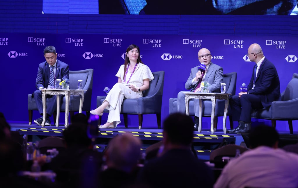 2025年中国会议:东南亚人工智能创新专题讨论小组成员包括(从左至右):CelcomDigi企业数据治理主管张杰基、OSK创投国际投资合伙人林莎拉、阿里云智能国际业务副总裁刘斌星,以及主持人《南华早报》科技编辑周鑫。照片:谭诺拉