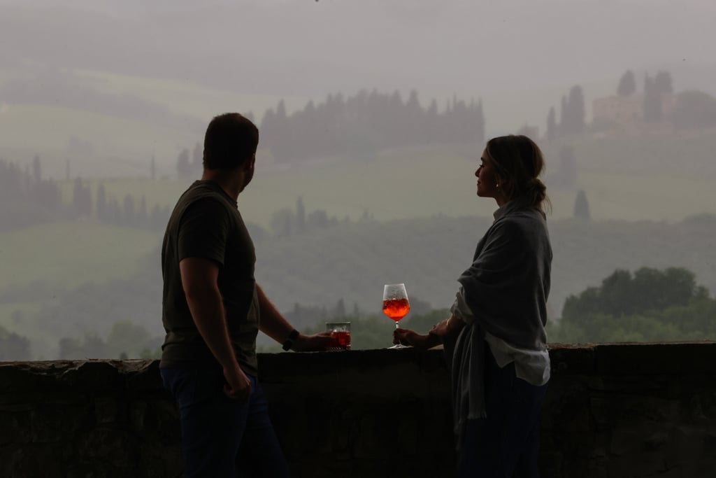 游客在意大利基安蒂的托斯卡纳山丘间享受日落开胃酒。图片来源:Getty Images