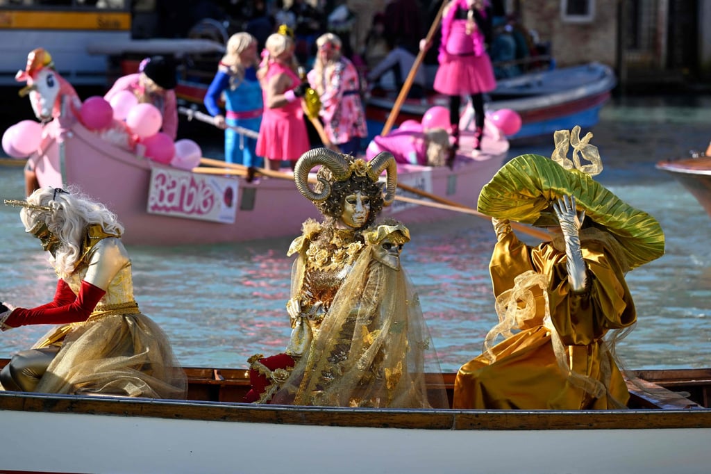 威尼斯狂欢节吸引成千上万人来到这座潟湖城市观看水上巡游——这是活动的亮点之一,并欣赏那些身着华丽服饰、戴着面具的人们,他们穿梭在狭窄的小巷中,聚集在圣马可广场拍照。