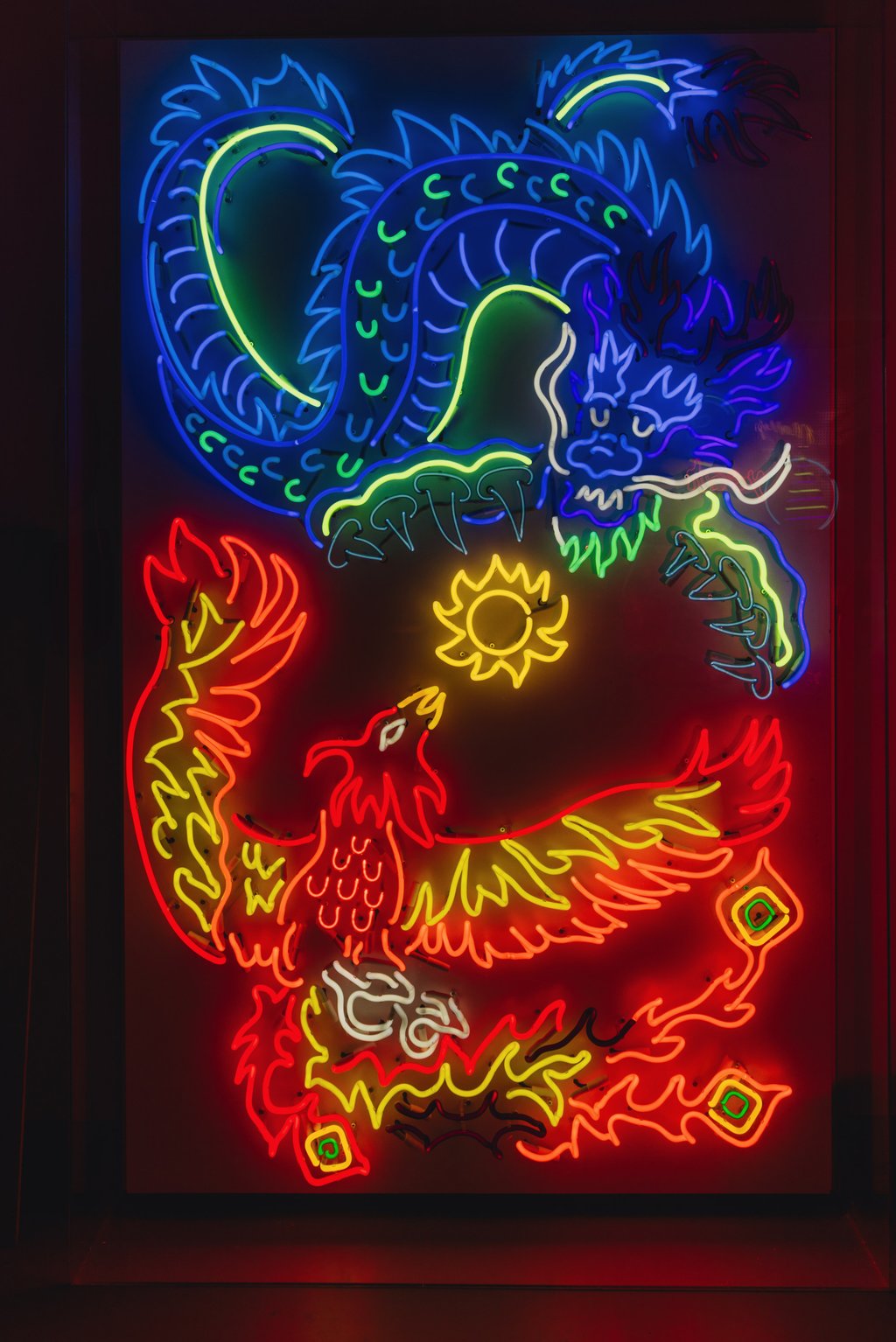 Jive Lau的霓虹灯艺术作品《龙与凤》。摄影:Jocelyn Tam