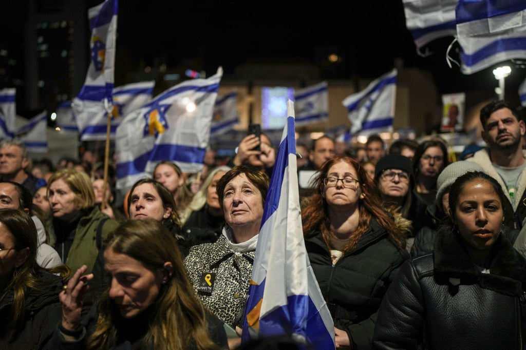 以色列特拉维夫民众在遗体移交后举行守夜活动。照片:美联社