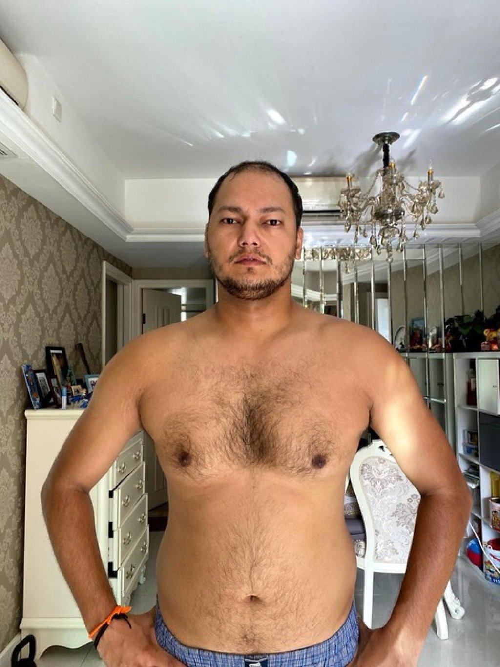 2023年3月拍摄的这张照片中,希曼舒·塔库尔体重达110公斤。照片来源:钦查克·萨塔帕西
