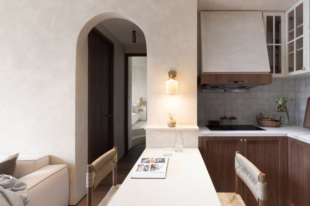 香港快节奏的生活方式与墨西哥图卢姆的波西米亚海滩风情截然不同。但当设计师Frankie Leung被要求在仅461平方英尺的典型香港公寓中注入轻松氛围时,他的思绪却被这个悠闲村庄所吸引——那里有着质朴的白墙建筑和优雅的罗马式拱门。