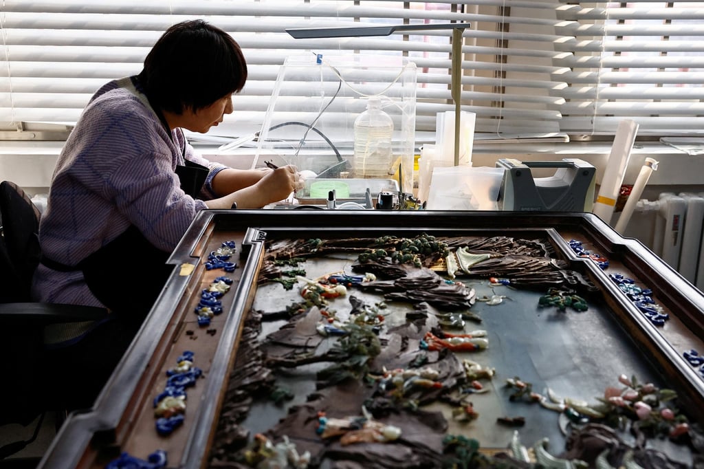 故宫博物院修复师工作场景。近十年来,历代帝王珍藏的文物修复进程显著加快。摄:路透社