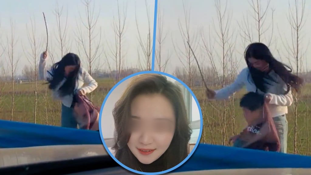 中国一位愤怒的母亲在儿子发脾气后,在路边用棍子殴打他,引发了网络上的育儿辩论。照片:南华早报合成/抖音