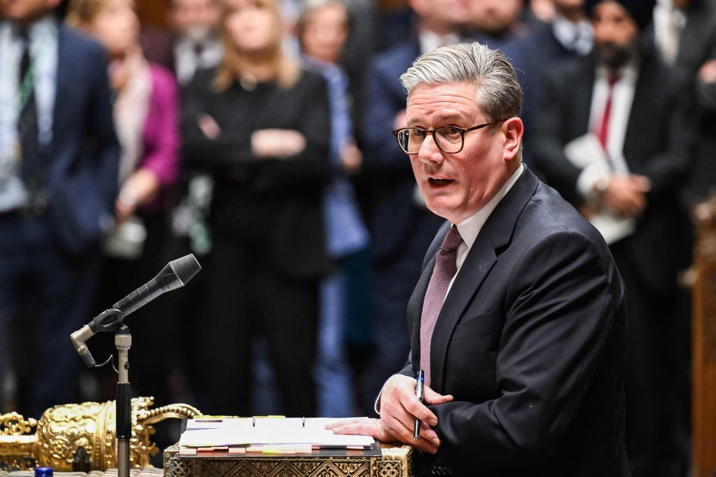 英国首相基尔·斯塔默周三在伦敦下议院发表讲话。照片:下议院/法新社