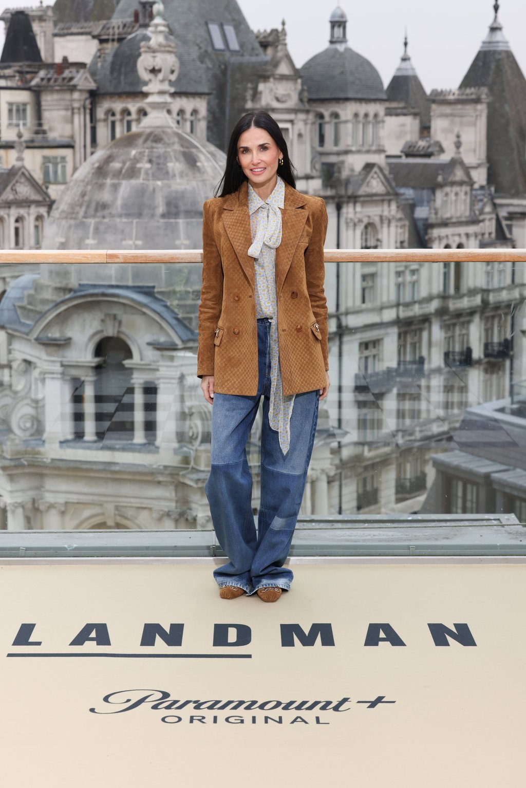 如何打造黛米·摩尔的复出女王风范:借助Chloé和Messika的助力,重现她在伦敦《Landman》宣传照中那套经典又不失女性魅力的古驰套装 | 南华早报